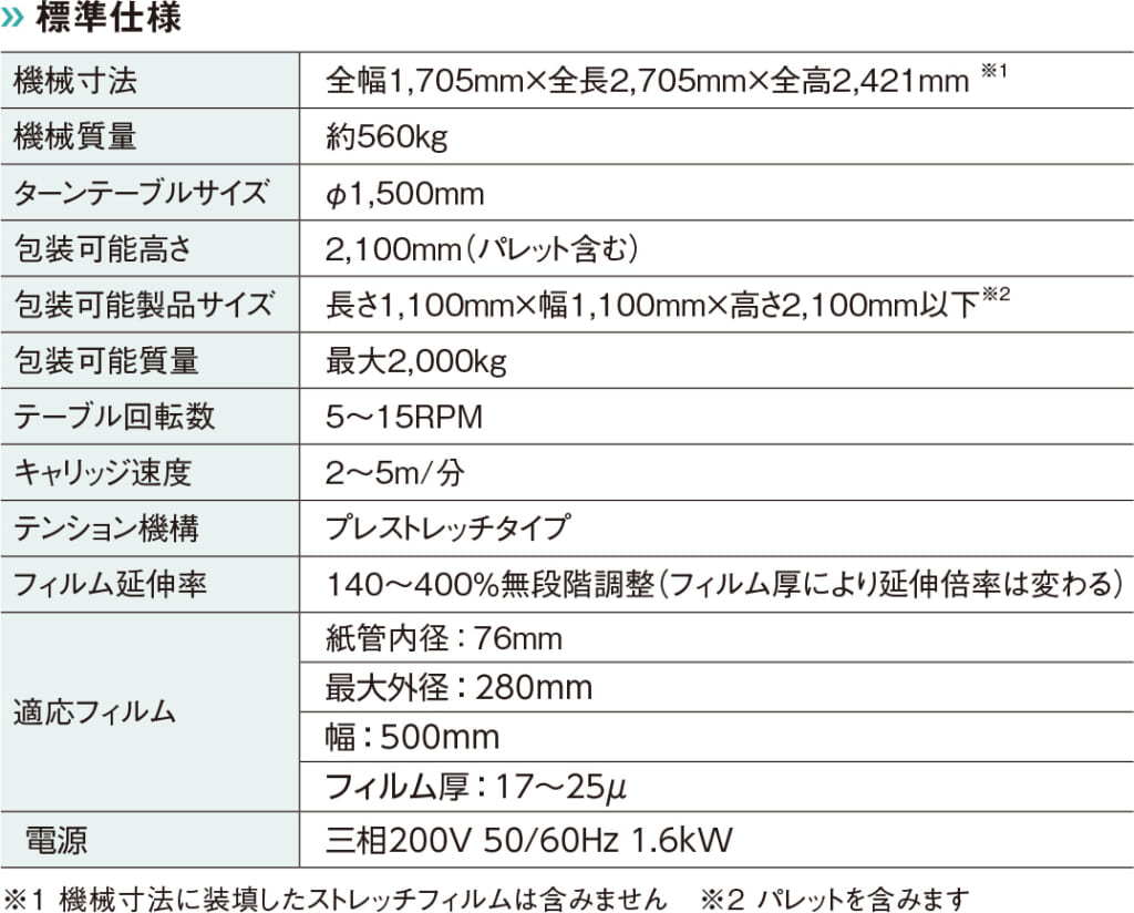 ※1 機械寸法に装填したストレッチフィルムは含みません ※2パレットを含みます