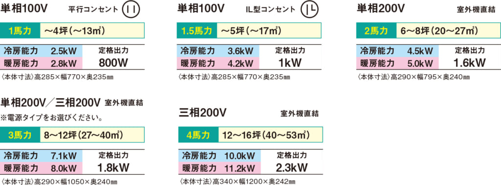 冷暖房機 選定の目安