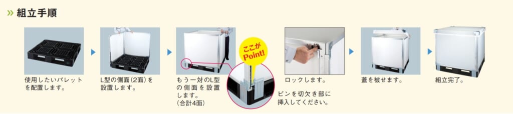 パレットに荷物が載った状態で外側から載せるスリーブボックスです。外側パネル2枚が一体となっており、組立がスムーズに行えます。