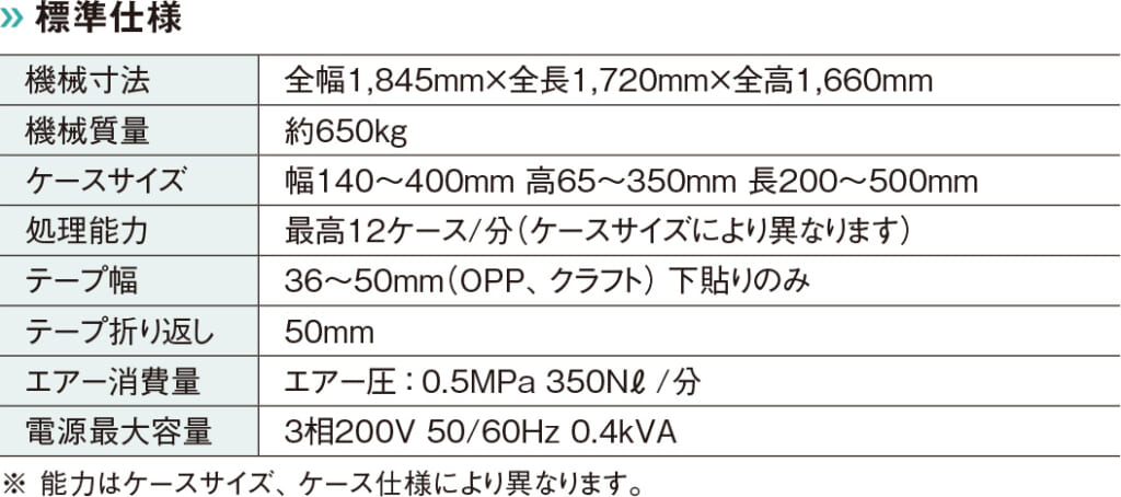 ◯ 製函能力は最大で12ケース/分(720ケース/時)。