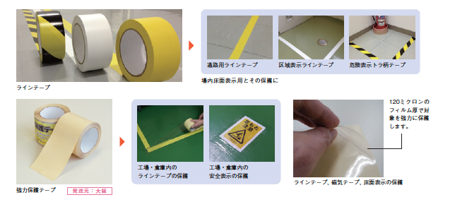 倉庫・工場内の誘導や区画整理に。使用する状況に応じて、様々な仕様をご提案できます。