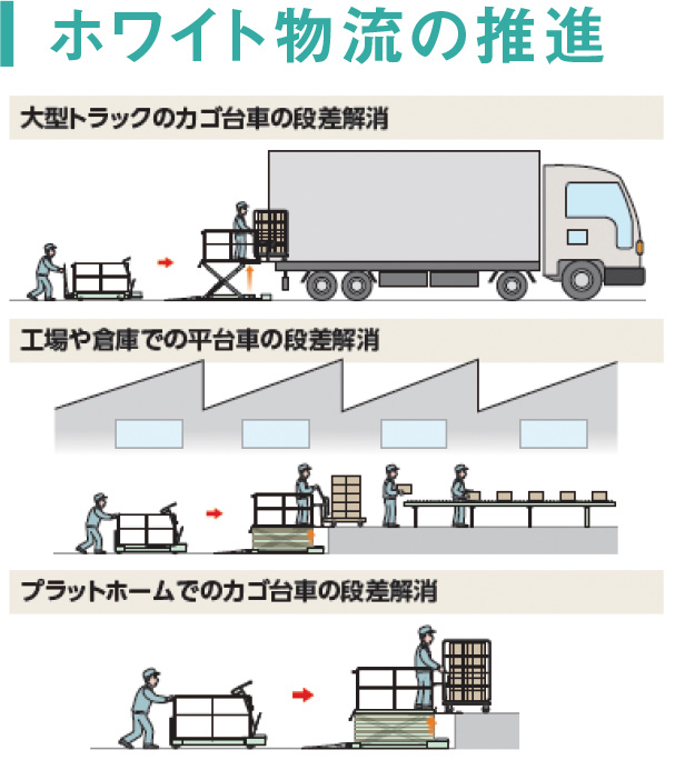 ◯ 工場や倉庫、プラットフォームやトラック荷台の段差を解消できます!
