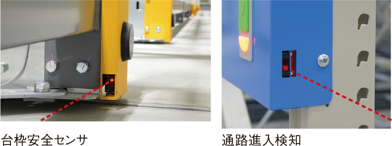 倉庫内の荷役作業では安全確保が最優先です。タナコンには、ラックの移動中、閉じようとする通路に作業者が進入した際や、落下した荷物・障害物などがある場合に自動停止するなど、数々の安全確保機能が装備されています。