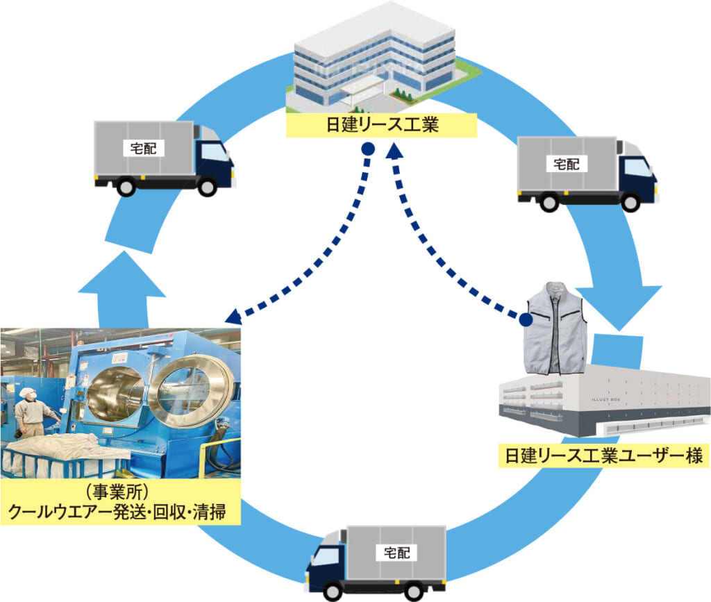 熱中症対策に最適な、クールウエアーレンタルサービス。シーズンになったらお手元にお届けするクールウエアーを導入することで、働き方改革促進にも繋がります。すべての商品が、全国で高品質なクリーニング対応可能です。