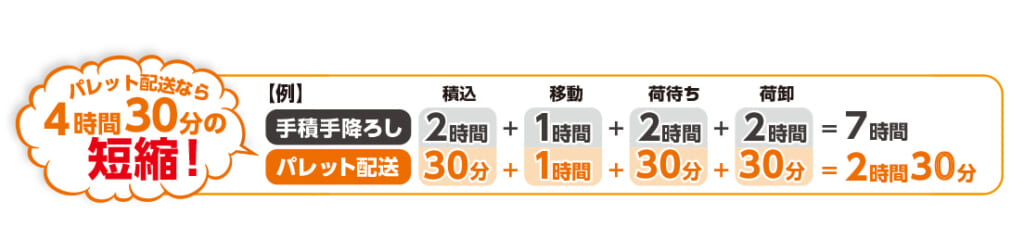 輸出用ワンウェイやリターナブルに最適。 パレット配送にて脱手積み手降ろし、荷待ち時間短縮。