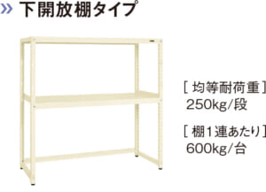 [ 均等耐荷重] 250kg/段 [ 棚1連あたり] 350〜500kg/台