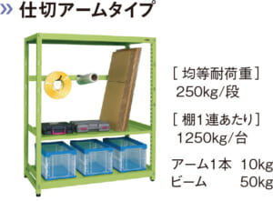 [ 均等耐荷重] 250kg/段 [ 棚1連あたり] 1250kg/台